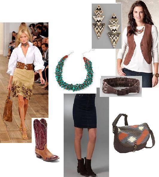 Ralph Lauren's Spring 2011 collection showcased the wild west with a modern American prairies feel to his pieces that included giant belt buckles, suede choker necklaces and Navajo rug tote bags.