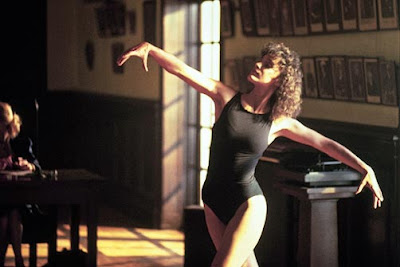 The most memorable scene in the whole film that made it such a 'big deal' was when Beals did her 'running in place' moves wearing only tights, a torn t-shirt and the infamous 80's 'leg warmers'. Every girl wanted the 'I just came from the dance studio' look, even if they didn't! The poster image fleece off the shoulder top was considered the most famous look from the film and it's still enduring to this day.