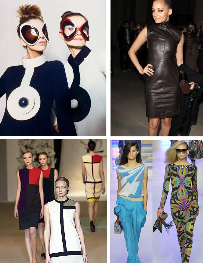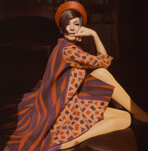 Pierre Cardin, the Italian born, French designer founded himself in 1950. He made the mini shift dresses in bright colors his trademark piece in the 60's. His patterns were all about geometric shapes and that moved the decade into a 'hipp'er' place.