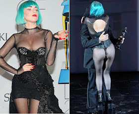 After seeing these photos of her whooping it up at the CFDA after party, I'd say...."Don't quit your day job Gaga"!  I think there's a fine line where fashion and taste are concerned and she's teetering on the edge of 'raunch'!  Any thoughts?...