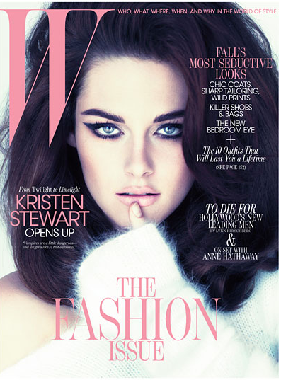 Twilight babe Kristen Stewart has been known for being a feminine tomboy with the most quirky vibe of awkwardness when speaking in public at award shows or talk shows, but on screen she has the innate ability to transform herself into any character she portrays. Usually seen in grunge attire, the 21 year old actress says her boy'ish nature stems from being the only girl having all male siblings. This September, Stewart's going to be kicking the femme side of herself up a notch as she will be appearing on the cover of 'W' magazine in full on glam.