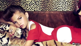 So this week in the news, I read an article about Vogue Paris and how they're under scrutiny as of late for having done a spread showcasing 10 year old French model Thylane Loubry Blondeau in an extremely suggestive light. I went and had a look see for myself & was utterly grossed out by what is clearly no more than legal kiddie porn. I just don't get it? Why a ten year old child? This is a prime example of child exploitation that leaves the viewer wondering, "Where are the parents in all of this?" I'll tell you where they are..."They're on their way to the bank & at the expense of selling out their kids to flip a buck!" How bout' their right to maintain innocence? Isn't this nothing short of pimping?