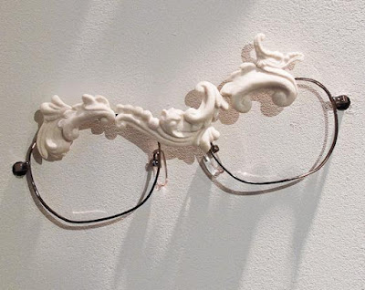 So now you get the idea in regards to what Baroque is all about right? O.k., so there's this designer, Moo Piyasombatkul, who's such a newbie that Wikipedia hasn't even categorized her yet. Anywho, this 23 year old Thai designer who lives in both London & Bangkok has come up with her own take on vintage Baroque by creating the most architecturally inspired eye wear frames. She intricately embellishes each pair with opulent porcelain motifs inspired by versions of 17th century furnishings. She came up with the idea when she spontaneously repaired a pair of her fave broken glasses with clay.