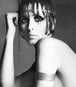 The bohemian 60's was different from the hippie 60's in that it wasn't about baring your feet and wearing flowers in your hair. It was more of a flowy maxi skirts, floppy hats, boas, faded torn blues and cheese cloth blouses that you can see through (I know because my aunt had one!) were what boho was all about. The mod mix in of course was the pixie hair do that was being duped by everyone from Twiggy, to Mia Farrow!