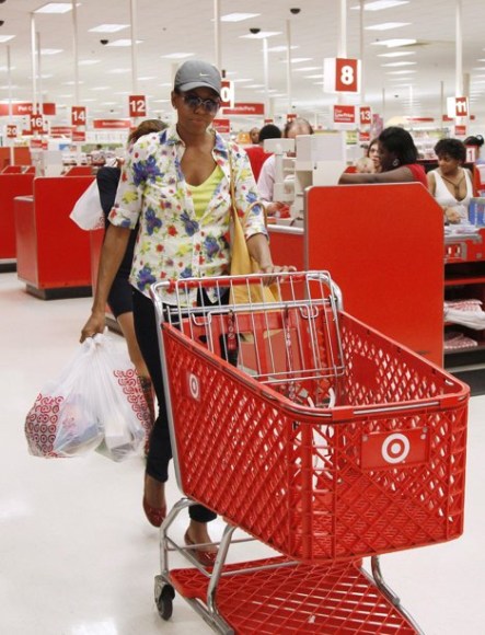 It's no secret that our current First Lady, Michelle Obama is beyond fond of designers like Alexander McQueen and Jason Wu, but did you know that she has been seen shopping for chic and cheap clothing at the Target store located near the White House? It's true! Mrs. Obama was incognito with her floral print top, b-ball cap and shades as she browsed the popular chain. On many occasion she has been seen wearing apparel from Target which we all know comes at a reasonably low cost. She's also been out and about in J. Crew and The Gap line and makes no excuses for the fact that she also loves shopping at Walmart. Given the status quo of being the wife of the President Of The United States, I don't ever recall a more 'frugal' First Lady...