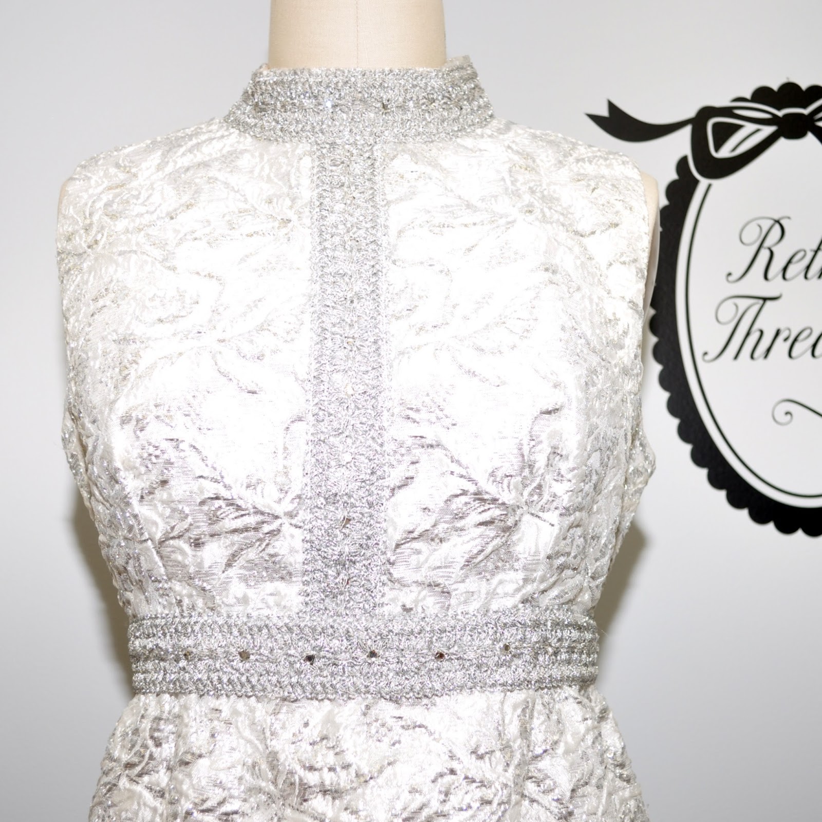 Vintage 60s Mod GoGo Metallic Silver Space Age Rhinestone Mini Scooter Atomic Dress Twiggy Iconic