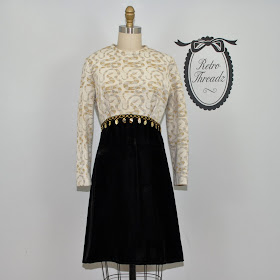 Vintage 60s Mod Metallic Black Velvet Mini Dress