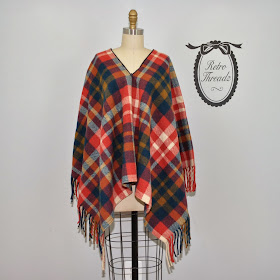 Vintage 60s Plaid Cape Knockabouts by Pendleton Poncho 100% Virgin Wool