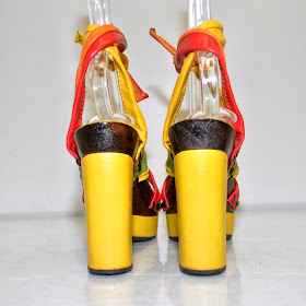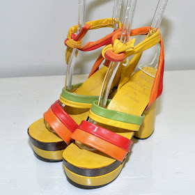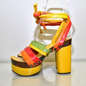 Yellow Platform Sandals Vintage 70s Famolare Tie Up Ankle Platform Wood Heels Shoes