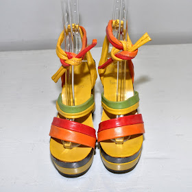 Yellow Platform Sandals Size 4 Vintage 70s Famolare Tie Up Ankle Platform Wood Heels Shoes